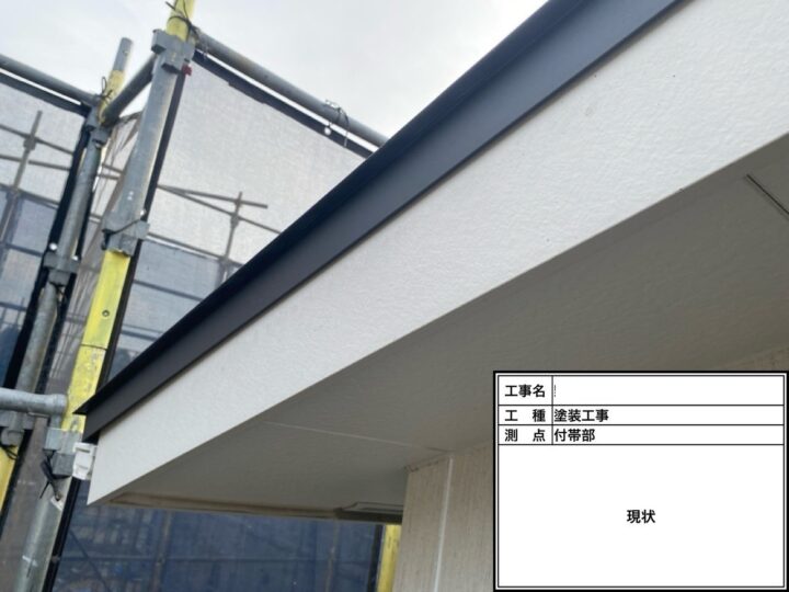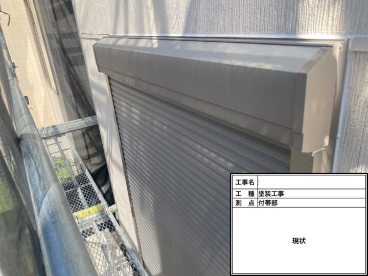 シャッターボックスの塗装が完了しました。破風板塗装施工前