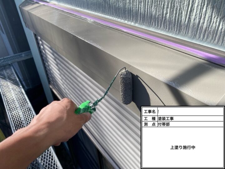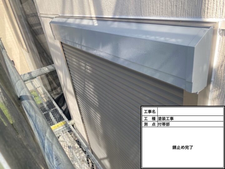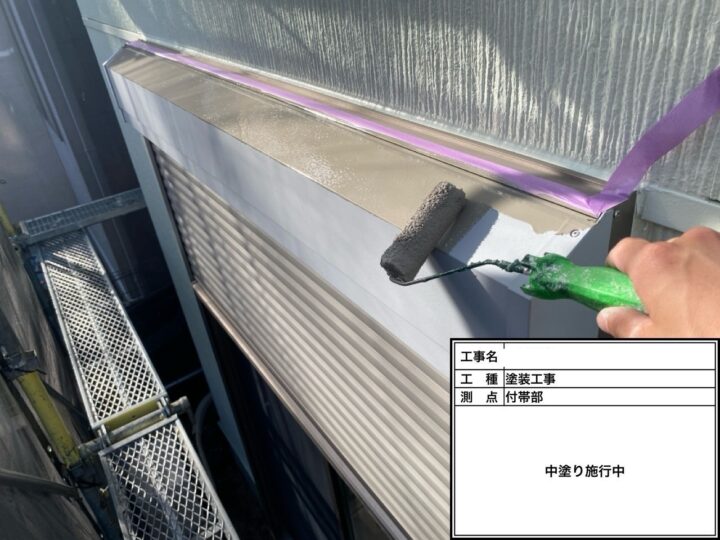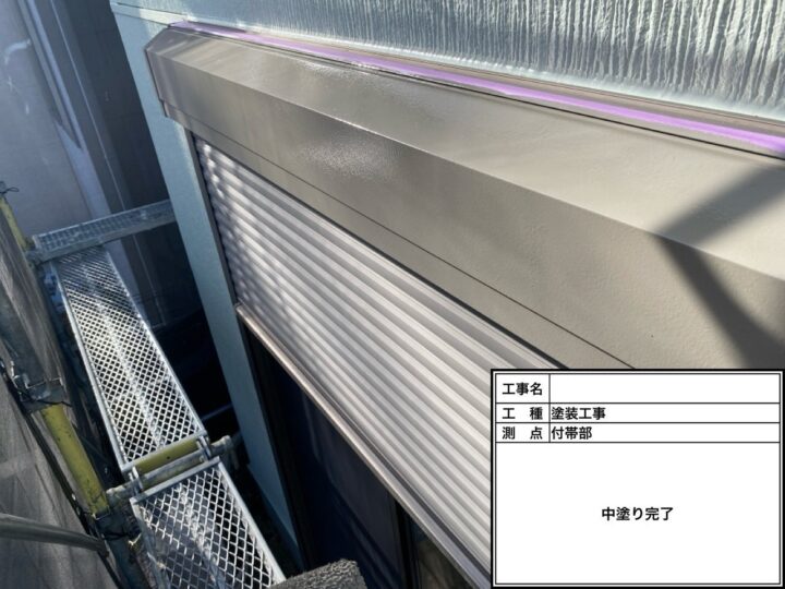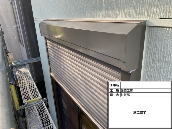 シャッターボックスの中塗りの塗装が完了しました。シャッターボックス上塗り塗装