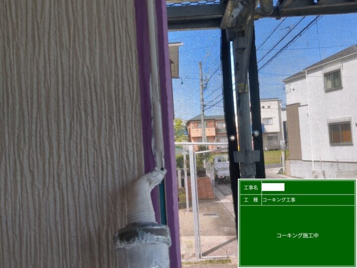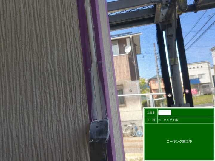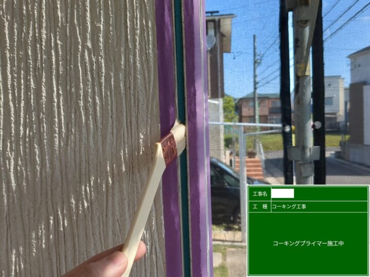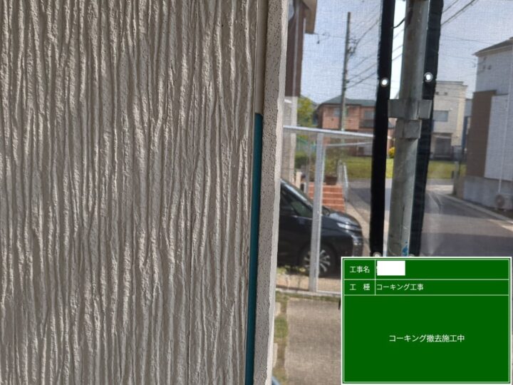既存コーキングの撤去が完了しました。コーキングプライマー塗布