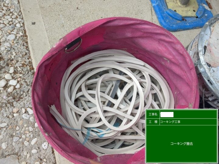 目地のコーキング打ち替え、既存コー金鵜の撤去です。既存コーキング撤去完了