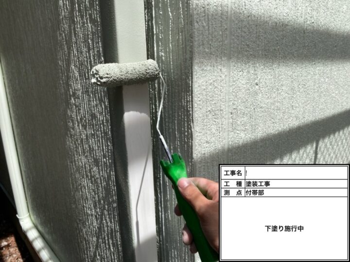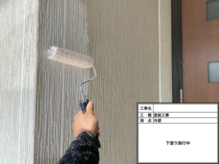 外壁の下塗りの塗装です。外壁下塗り塗装完了