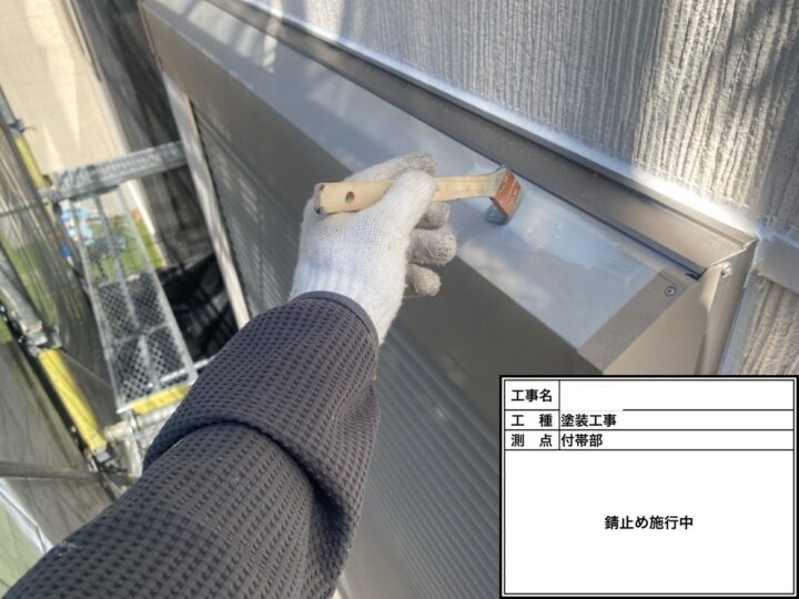 シャッターボックス塗装の錆止めの塗装です。シャッターボックス錆止め塗装完了