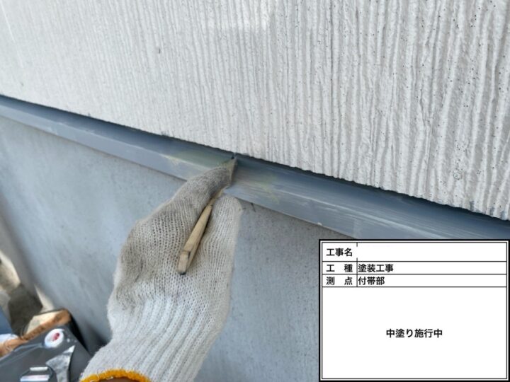 水切りの中塗りの塗装が完了しました。水切り上塗り塗装