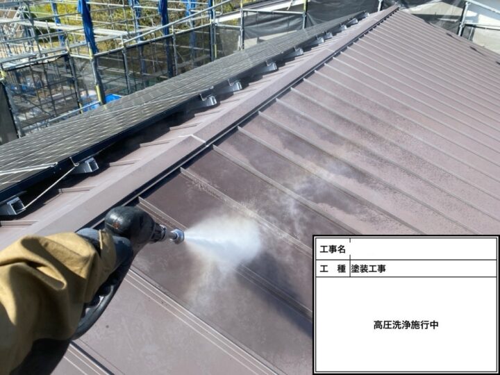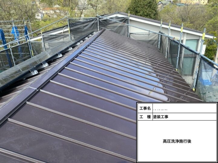 屋根の高圧洗浄が完了しました。既存コーキング撤去