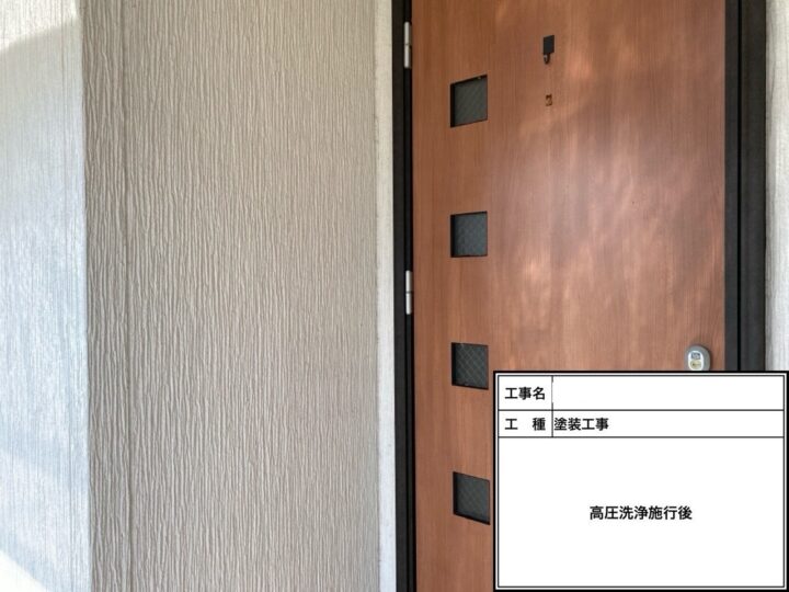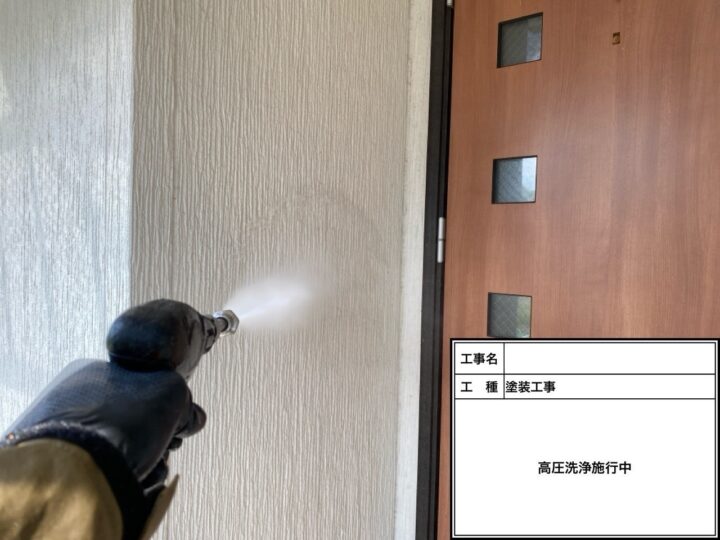 外壁の高圧洗浄です。外壁高圧洗浄完了