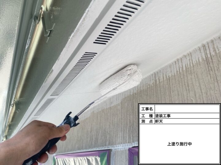 軒天塗装の上塗りの塗装です。軒天上塗り塗装完了