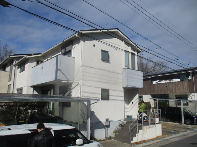 外壁の上塗りの塗装が完了しました。屋根塗装施工前
