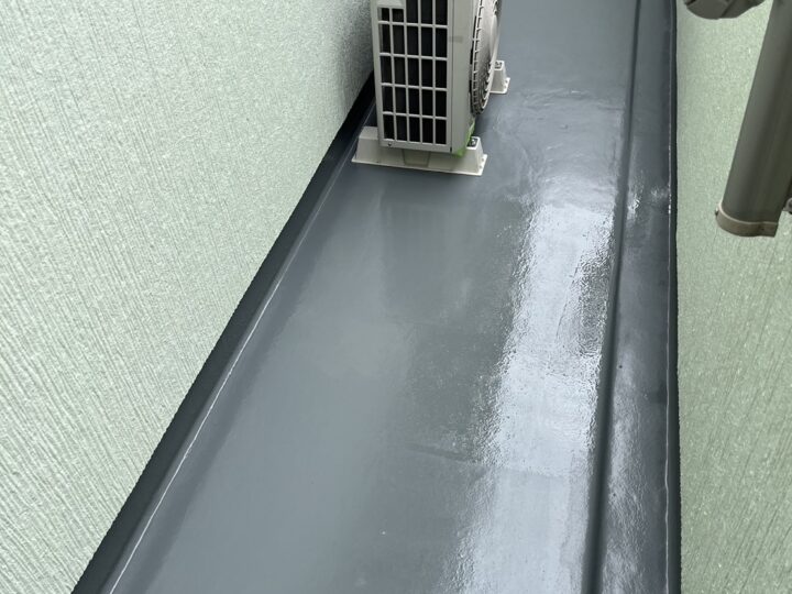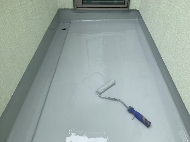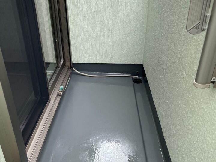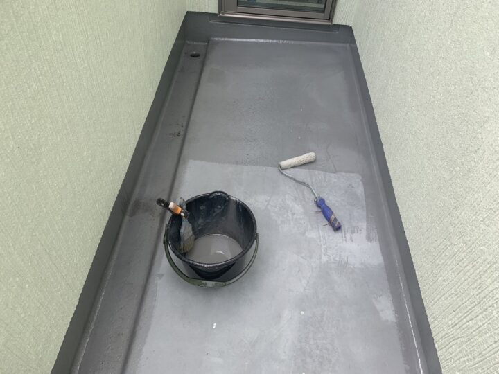 バルコニー防水のトップコートの塗装です。バルコニー防水トップコート塗装完了