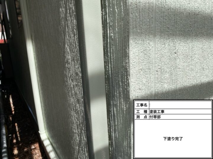 外壁の下塗りの塗装が完了しました。外壁中塗り塗装