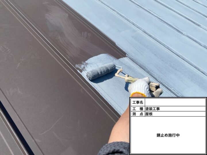 屋根の錆止めの塗装です。屋根錆止め塗装完了