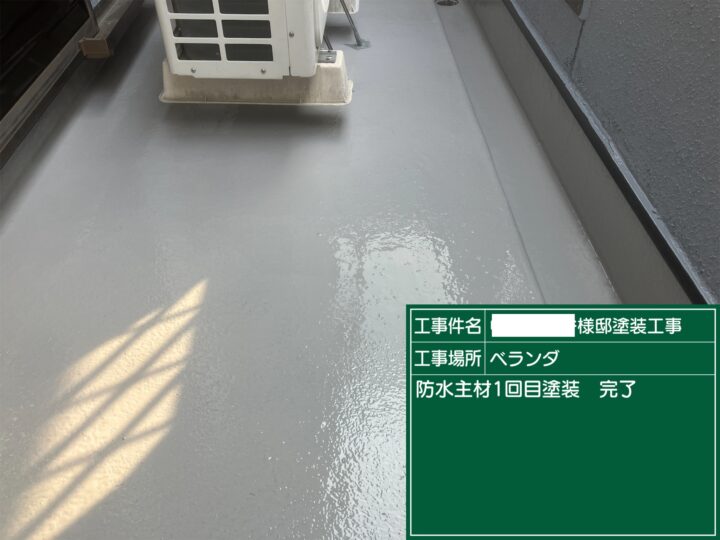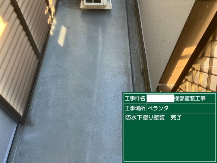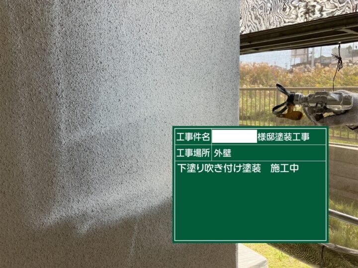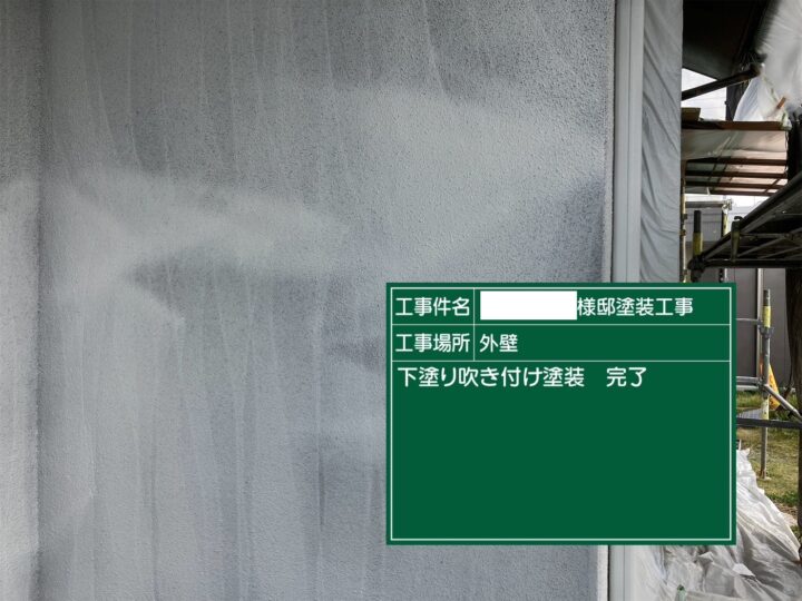 外壁無機塗料塗装の下塗りの塗装が完了しました。