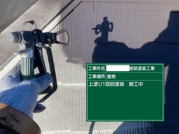 屋根キルコ断熱塗料の上塗り1層目の塗装です。