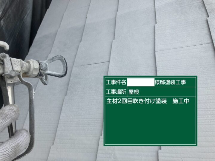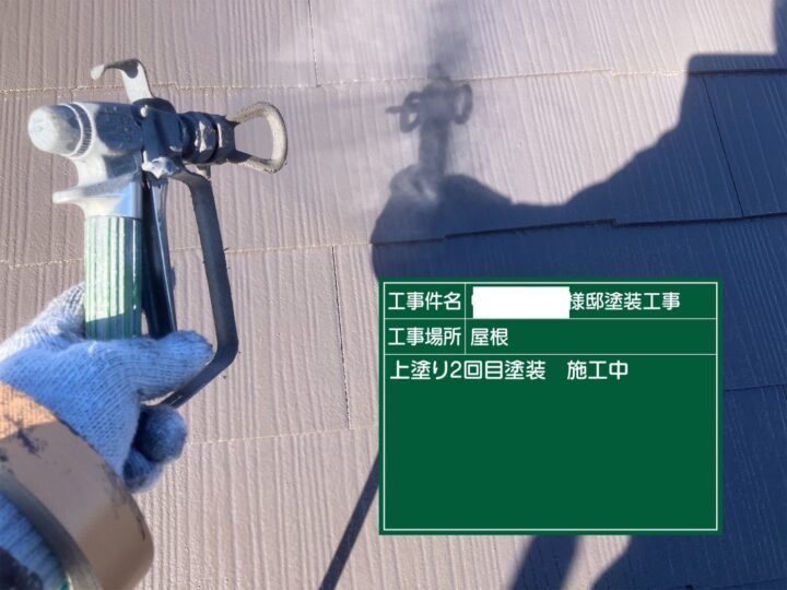 屋根キルコ断熱塗料の上塗り2層目の塗装です。