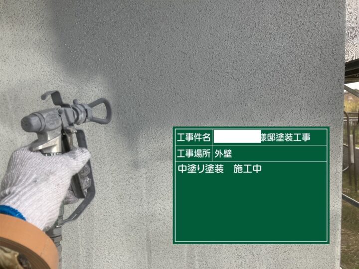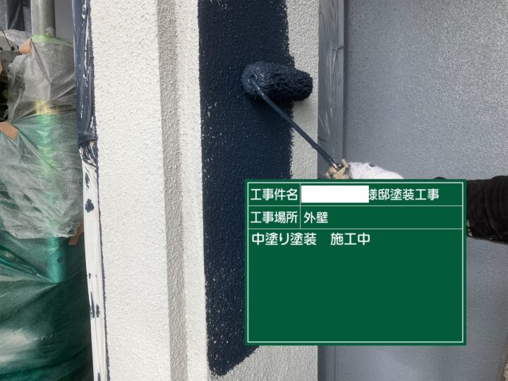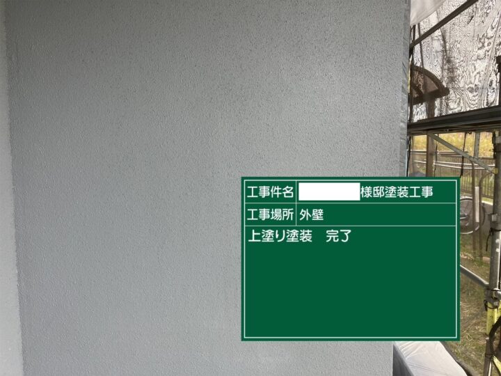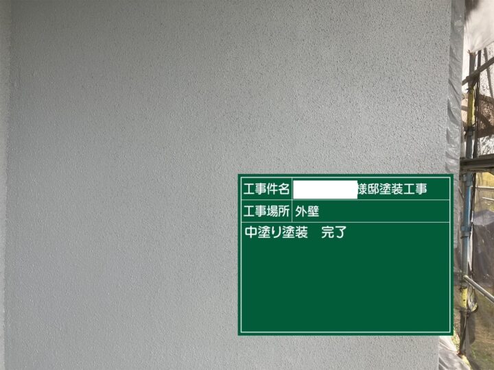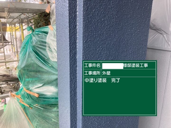外壁無機塗料のアクセント中塗りの塗装が完了しました。