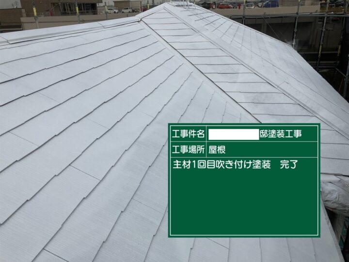 屋根キルコ断熱塗料の上塗り1層目の塗装が完了しました。