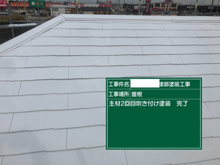 屋根キルコ断熱塗料の上塗り2層目の塗装が完了しました。