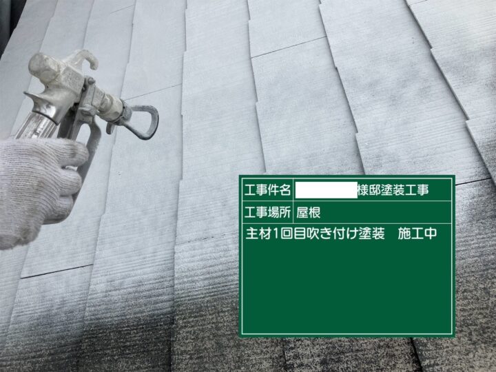 屋根キルコ断熱塗料の下塗り1層目の塗装です。