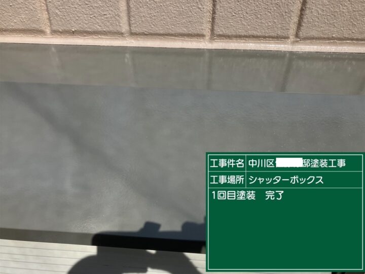 シャッターボックス塗装の中塗りの塗装が完了しました。