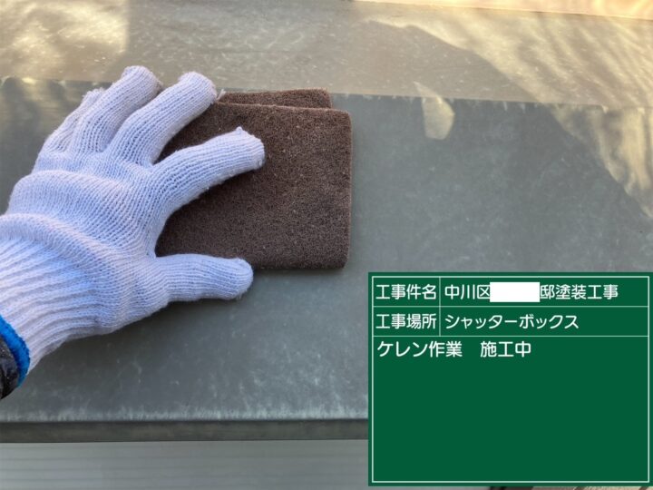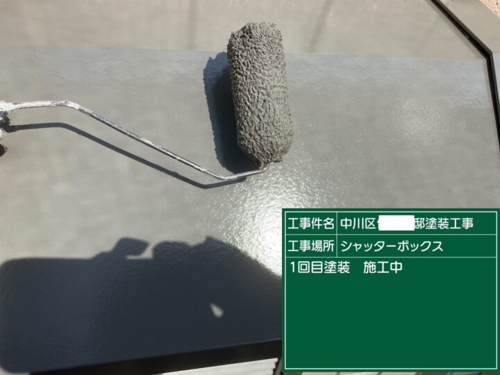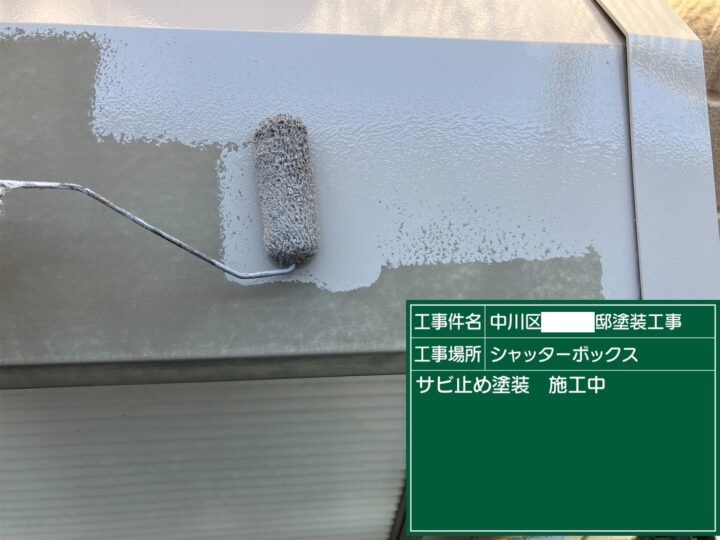 シャッターボックス塗装の錆止めの塗装が完了しました。