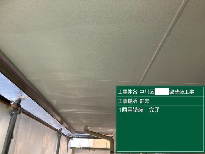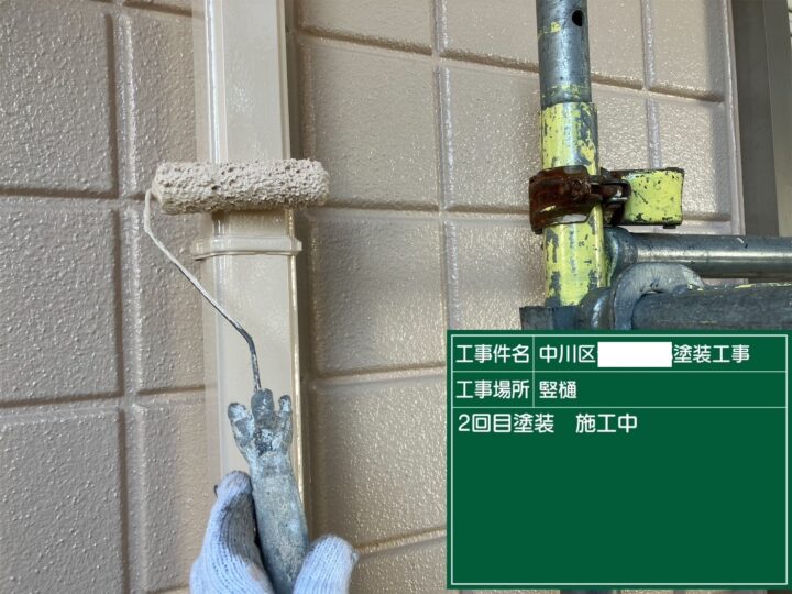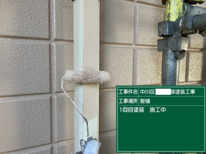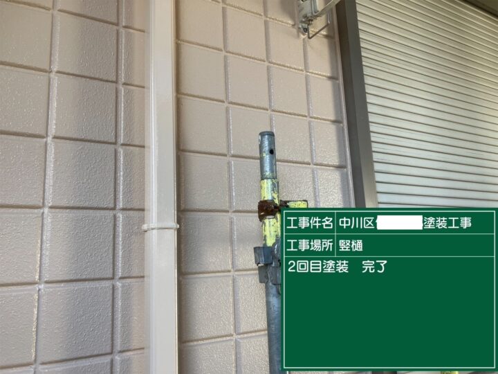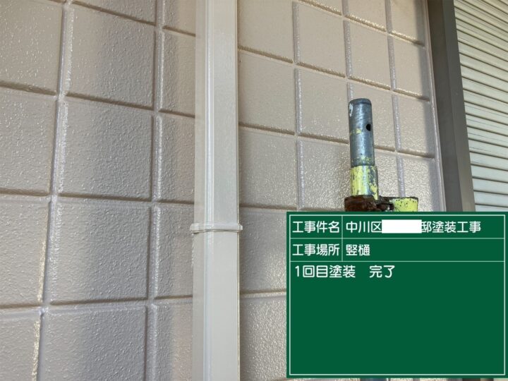 雨樋塗装の上塗り1回目の塗装が完了しました。