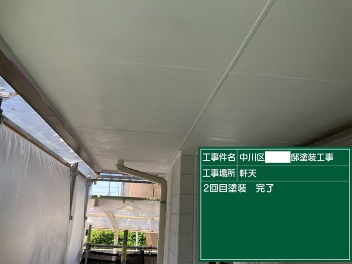 雨樋塗装の上塗り2回目の塗装が完了しました。