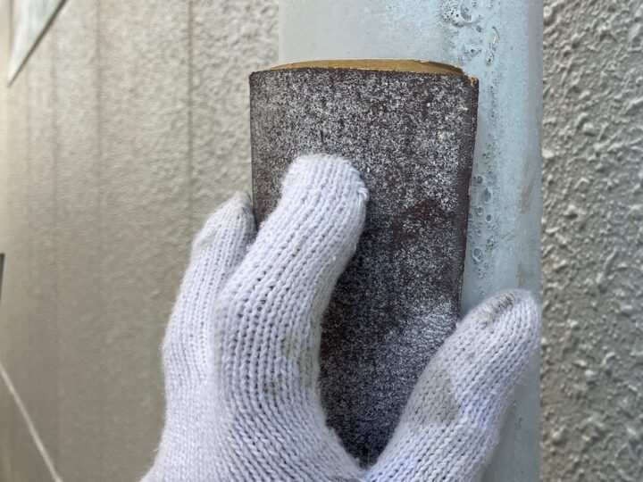 雨樋塗装の素地調整です。