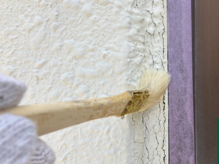 外壁サッシ廻りコーキングプライマー塗布