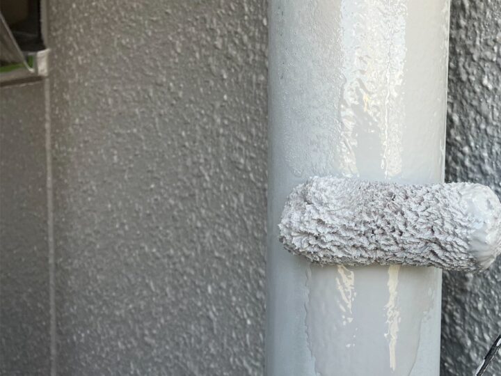 雨樋塗装の上塗り2層目の塗装です。