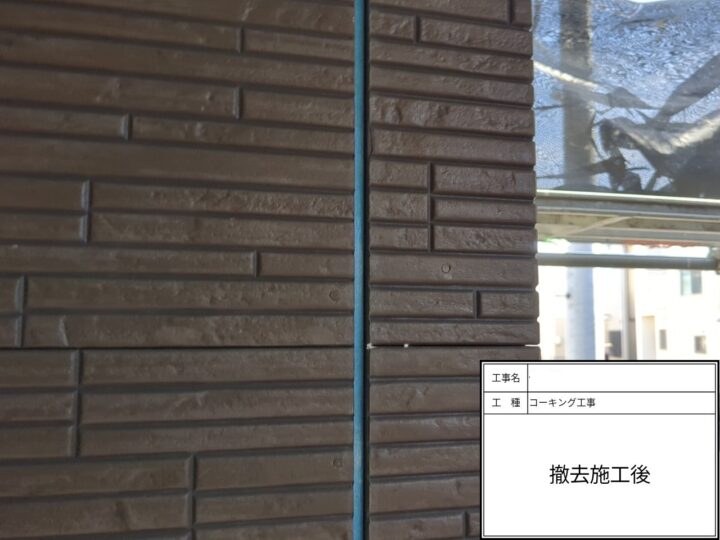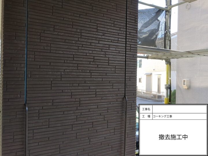 外壁目地の既存コーキング撤去が完了しました。