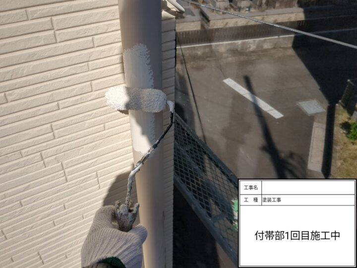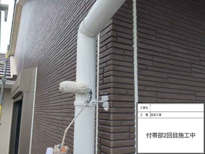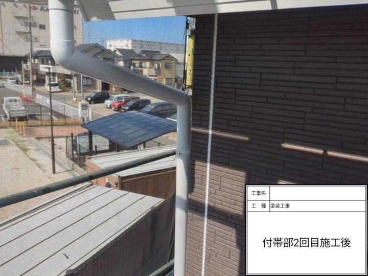 雨樋塗装の上塗り1回目の塗装が完了しました。