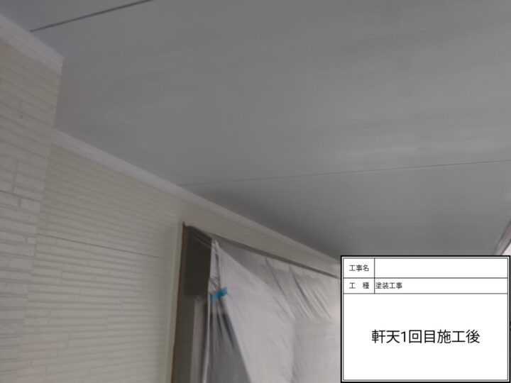 軒天塗装の上塗り1回目の塗装が完了しました。