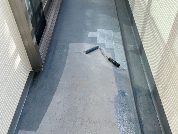 バルコニーウレタン防水のプライマーの塗装が完了しました。
