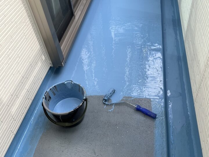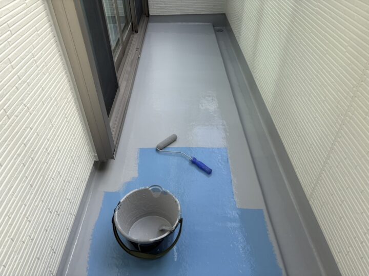 バルコニーウレタン防水のトップコートの塗装で鵜です。