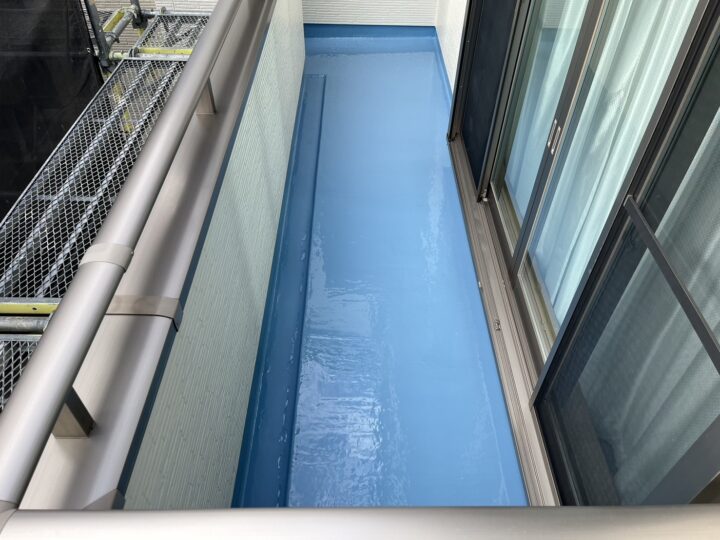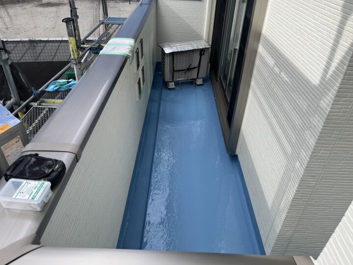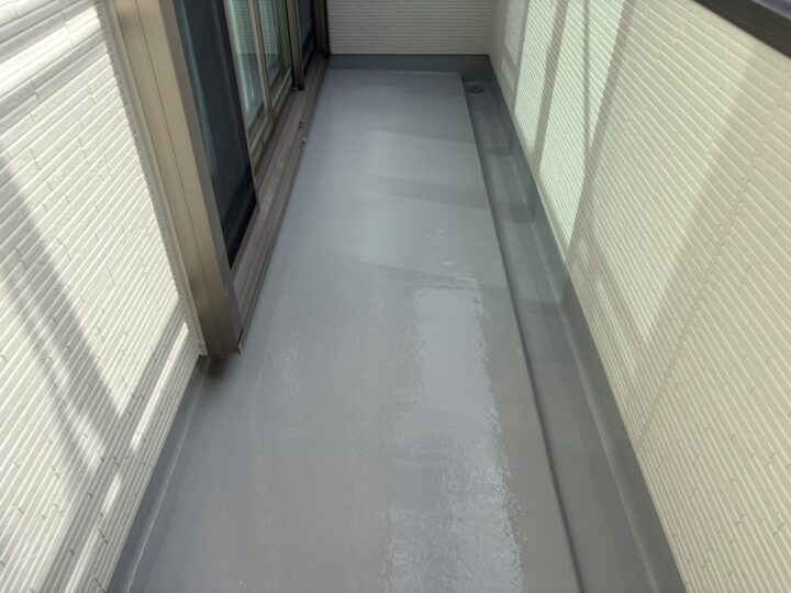 バルコニーウレタン防水の塗装が完了しました。