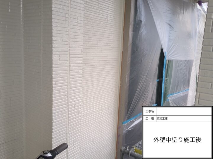 外壁塗装の中塗りの塗装が完了しました。