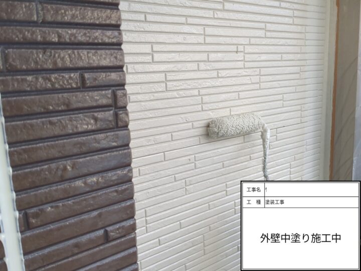 外壁塗装の中塗りの塗装です。