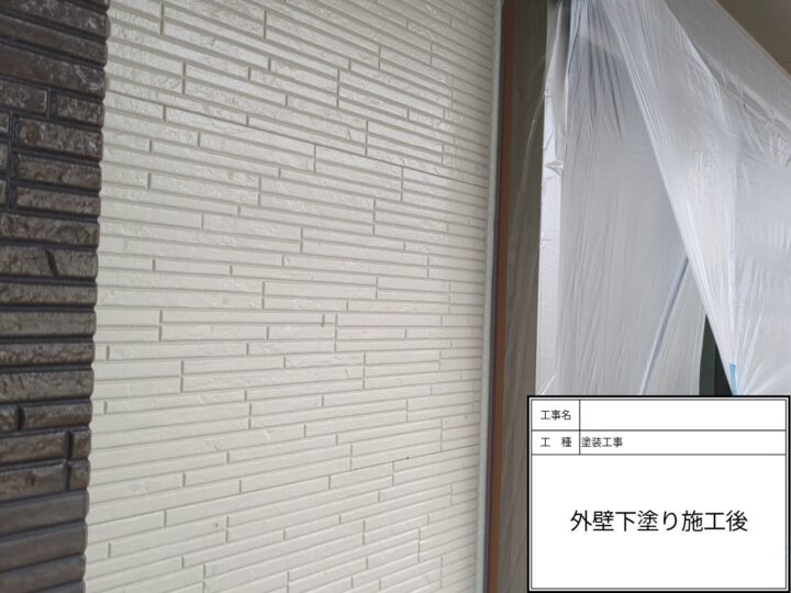 外壁塗装の下塗りの塗装が完了しました。