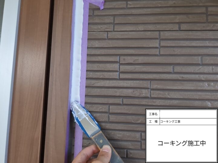 外壁サッシ廻りコーキング打設です。