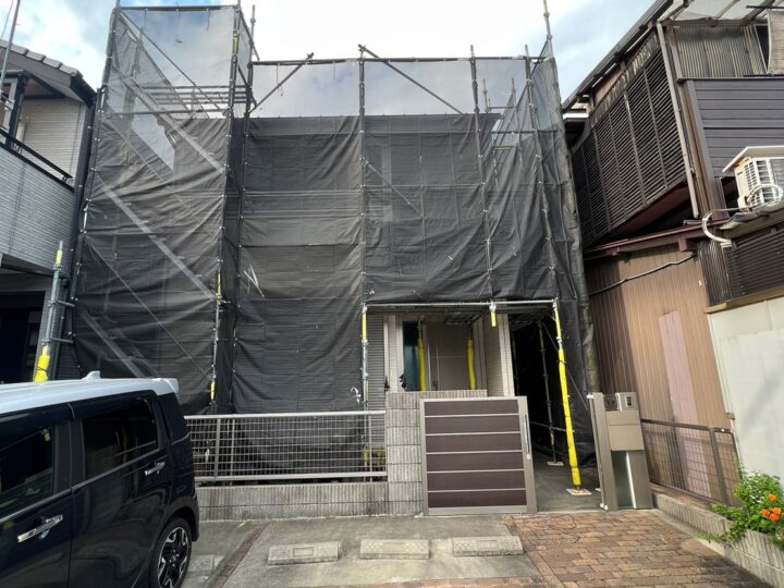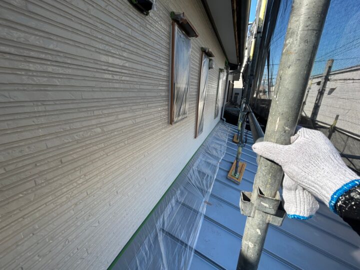 お客様の大切なお住まいは、意匠性の高いサイディング外壁でした。この美しい質感を守りつつ、名古屋の強い日差しや雨風から長期間保護するため、今回は「無機塗料」を採用いたしました。