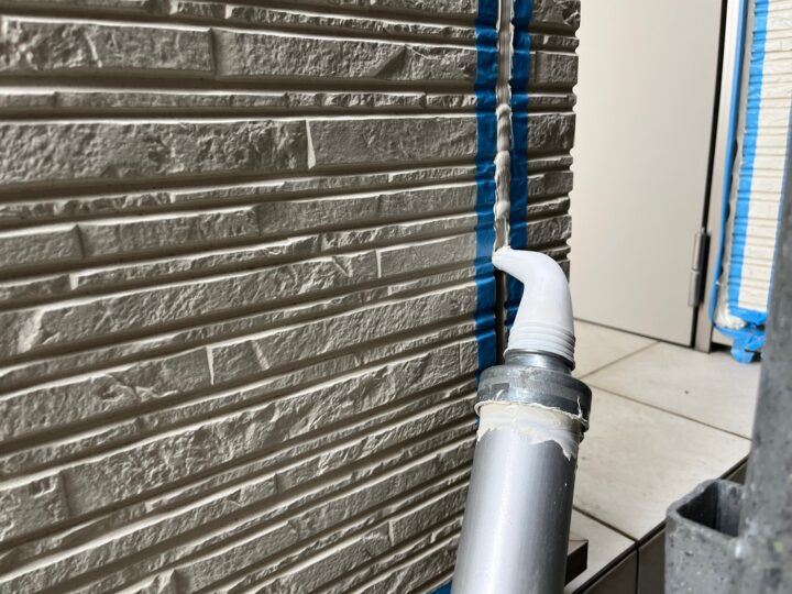 外壁目地のコーキングならしです。
