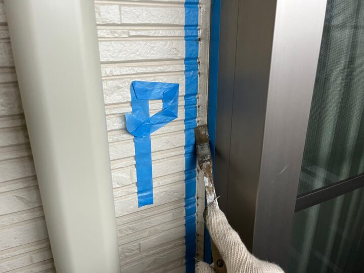 外壁サッシ廻りのコーキングプライマーの塗布です。